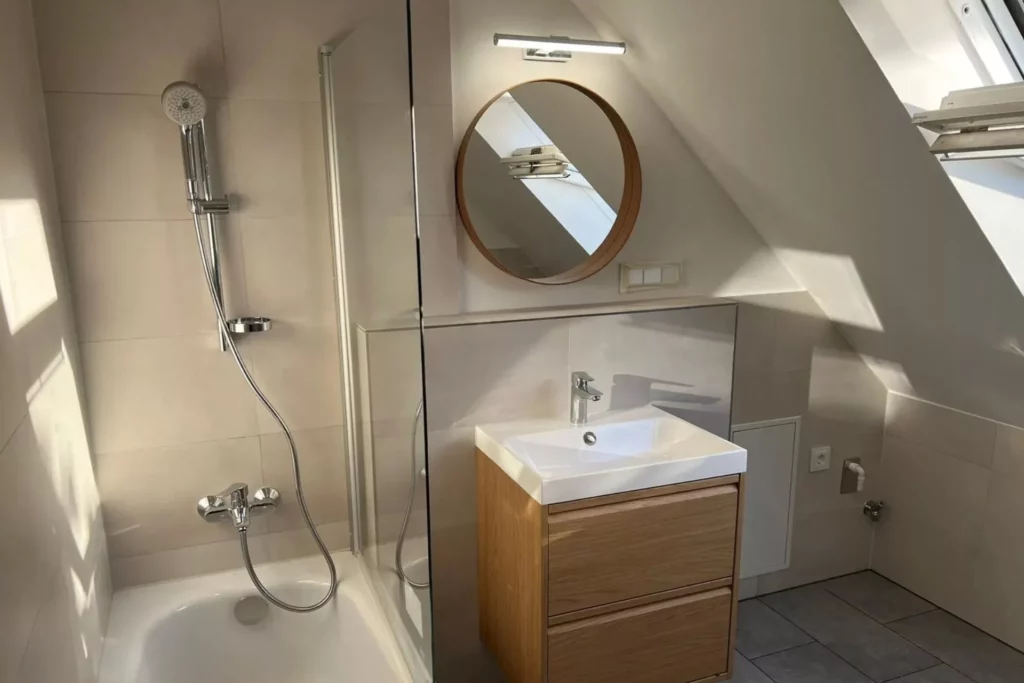 Wie verwandelt man ein kleines Badezimmer unter einer Dachschräge in einen einladenden Raum?